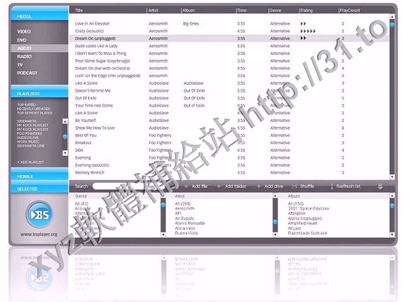 BS Player是一個Windows平台的媒體播放器。它可以播放avi、mpg、asf、wmv、wav、mp3等